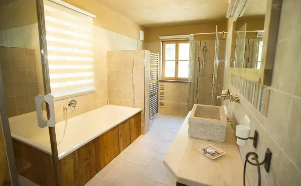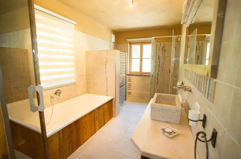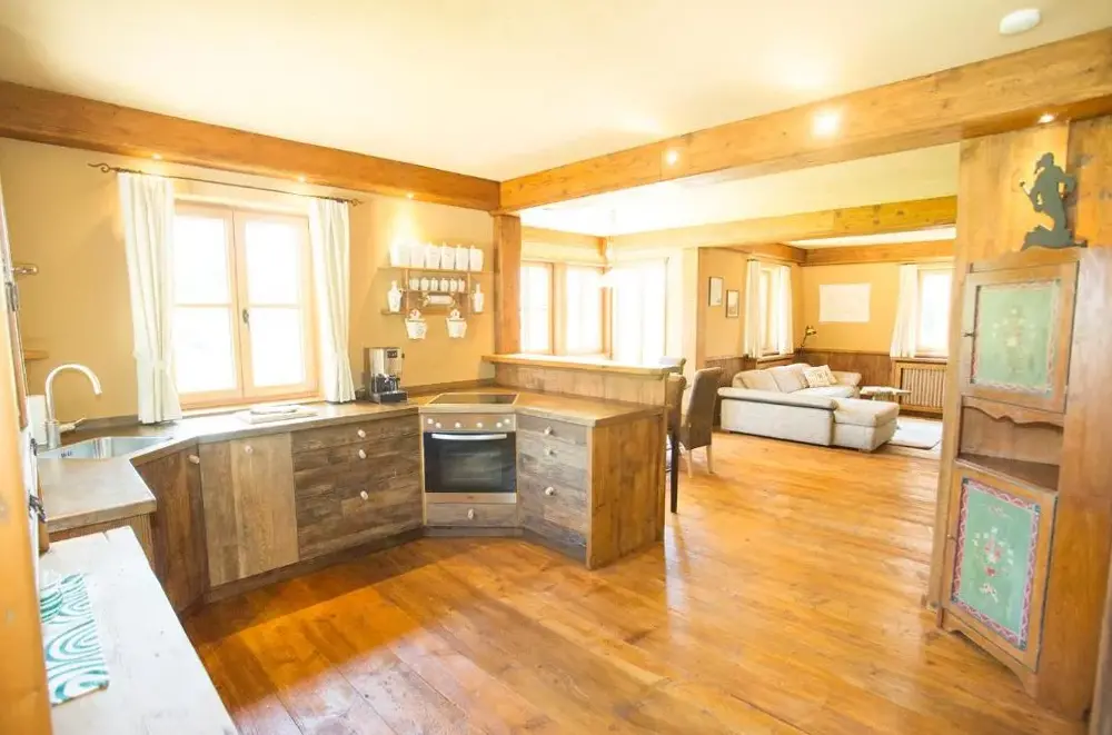 La casa è molto raffinata e rustica e, grazie alla sua costruzione naturale, offre un piacevole clima interno.La posizione in un ambiente tranquillo con vista sulle montagne circostanti è perfetta.Puoi raggiungere fornitori locali, ristoranti e il lago in pochi minuti a piedi.Dai padroni di casa estremamente simpatici e disponibili, abbiamo anche ricevuto ottimi consigli per esplorare la regione.